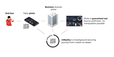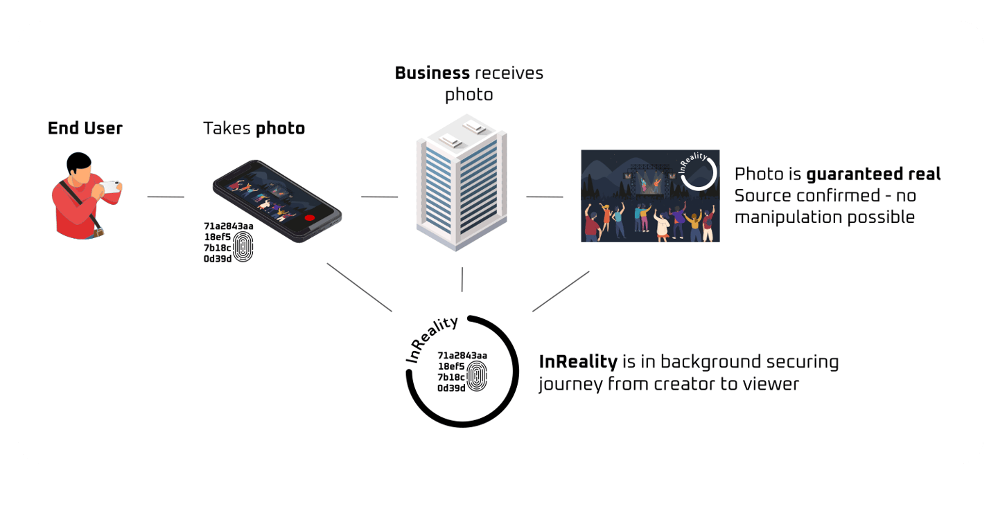 InReality saves cryptographic fingerprints on the content, not the content itself